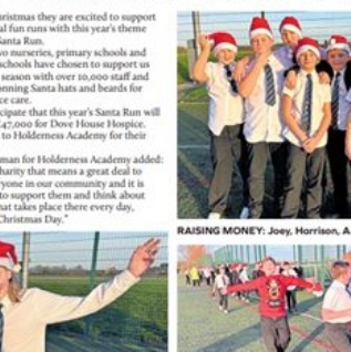 Pupils at Holderness Academy took part in the school’s annual Santa Run to raise money for Dove House Hospice. On Friday 6th December, more than 200 year 7 pupils, many in Santa hats and suits, ran a lap around the school sports facilities to raise funds and awareness for the hospice charity, raising a total of £791.50.