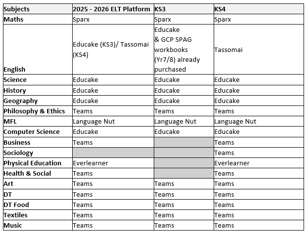 We understand that our learners need time outside of school to be young people and to enjoy their time away from school to spend with family, friends and participate in their hobbies and interests. Therefore, as a guide, we encourage our students to spend up to 20 minutes maximum at KS3 and up to 30 minutes maximum at KS4 per subject a week, completing the ELTs that have been set.
